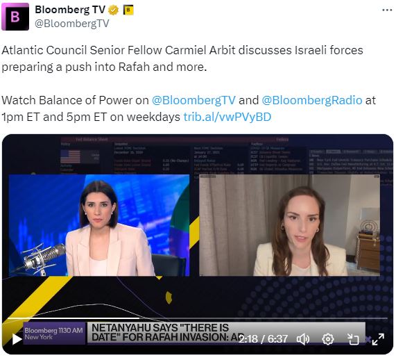 今天在彭博电视台的权力平衡早间版节目中,主持人乔·马修和凯莉·莱因兹采访了大西洋理事会的卡米尔·阿比特,谈论了加沙战争以及包括释放哈马斯扣押人质在内的停火谈判前景。