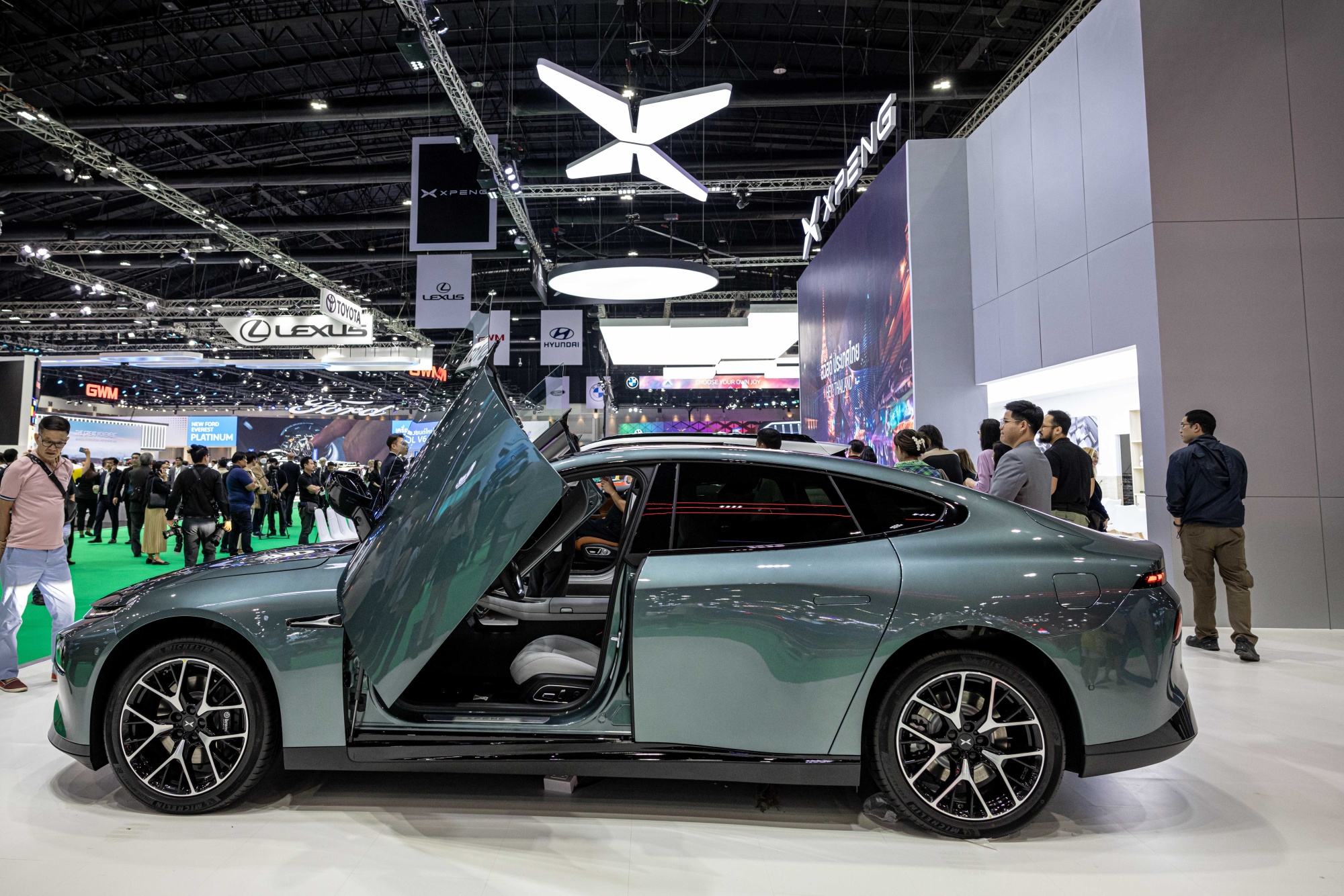 一辆小鹏P7i在曼谷国际车展上。摄影师:Andre Malerba/彭博小鹏汽车,阿里巴巴集团是其股东之一,宣布计划在今年的曼谷国际车展上进军东南亚市场。它将从第三季度开始在泰国、新加坡和马来西亚交付。