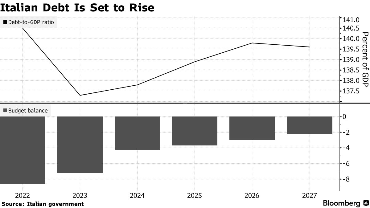 摄影师:Filippo Monteforte/AFP/Getty Images根据新的政府展望,意大利的债务堆积将再次开始上升,该展望还坚称经济将在2024年实现超过大多数预测的增长。