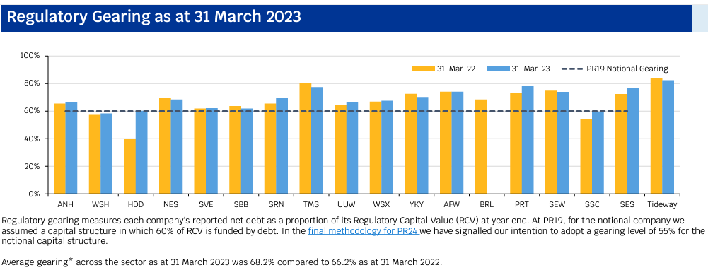 报告指出,有六家水务公司的负债率达到70%或以上:泰晤士、约克郡、亲和、朴茨茅斯、东南和SES。朴茨茅斯由于借款开发哈万特森林水库,报告显示其监管负债率最高,为78.4%。Ofwat建议负债率控制在55%。