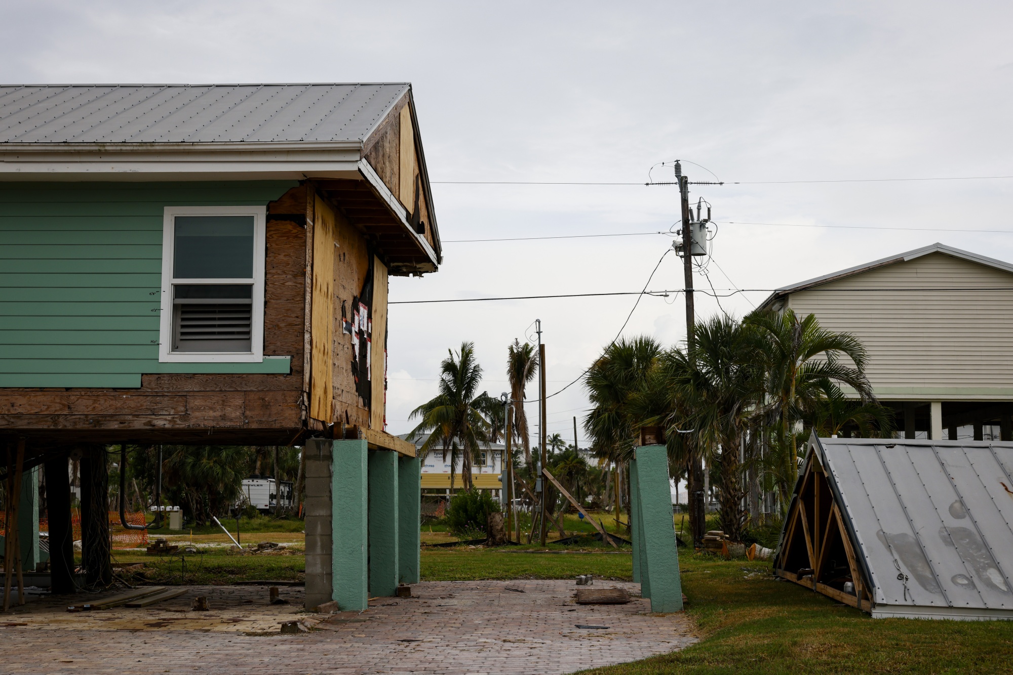 飓风伊恩过后在佛罗里达州迈尔斯堡受损的房屋,拍摄于2023年8月29日。气候驱动的极端天气事件正在推动美国各地的住房保险费率上涨。