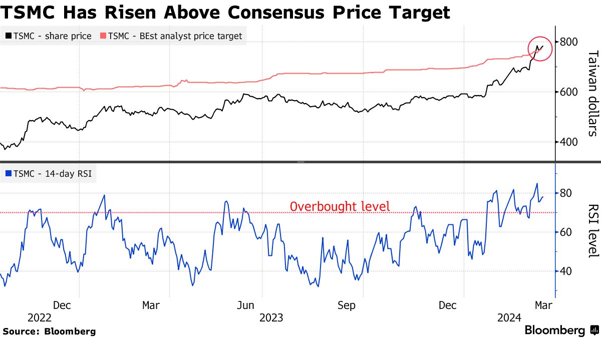 亚洲最大的公司自2022年10月低点以来已经翻了一番多,投资者押注其为Nvidia等公司制造的先进人工智能芯片将持续需求。这抵消了有关全球智能手机低迷是否已经结束的担忧。该公司定于4月18日公布完整财报。