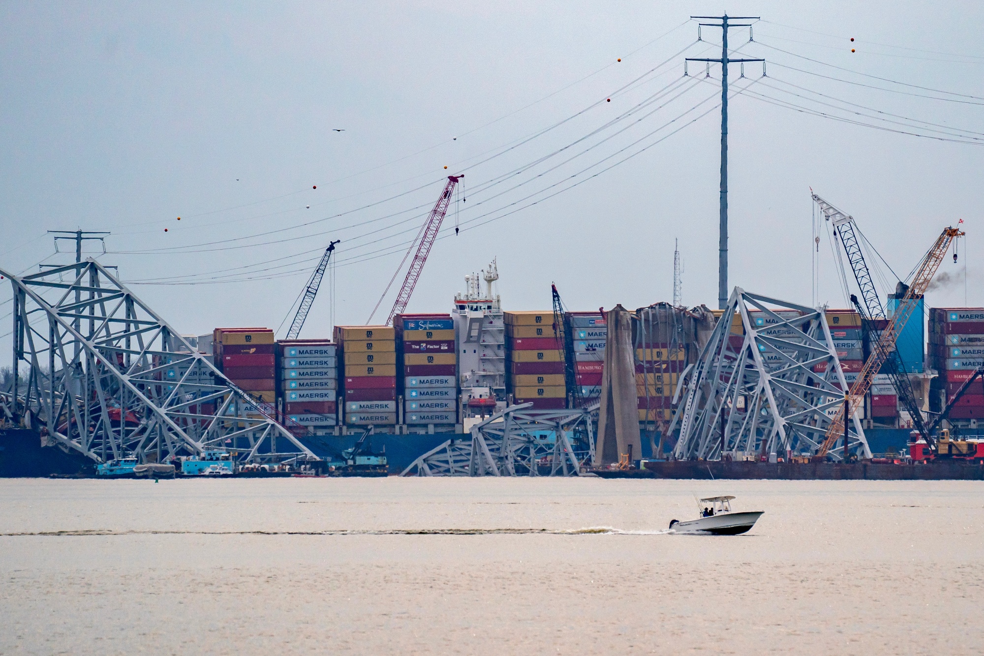 这座长1.6英里(2.6公里)的桥是巴尔的摩的一个主要通勤要道,在一艘货船撞击后于3月26日倒塌,导致当时在桥上的六名建筑工人丧生。美国东海岸最繁忙港口之一的航运交通停止,巴尔的摩周围的主要公路交通受到干扰。
