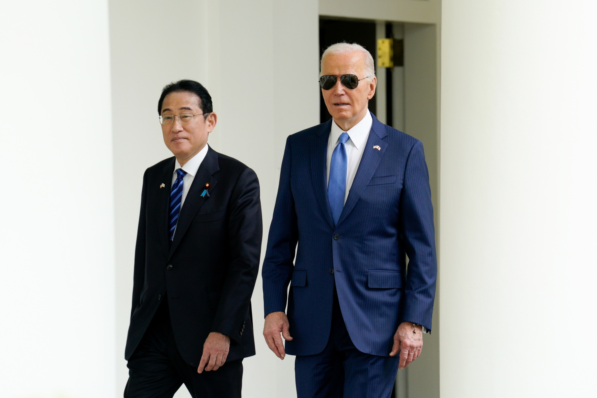 美国总统乔·拜登(Joe Biden),右,和日本首相岸田文雄(Fumio Kishida)于4月10日在白宫会面。