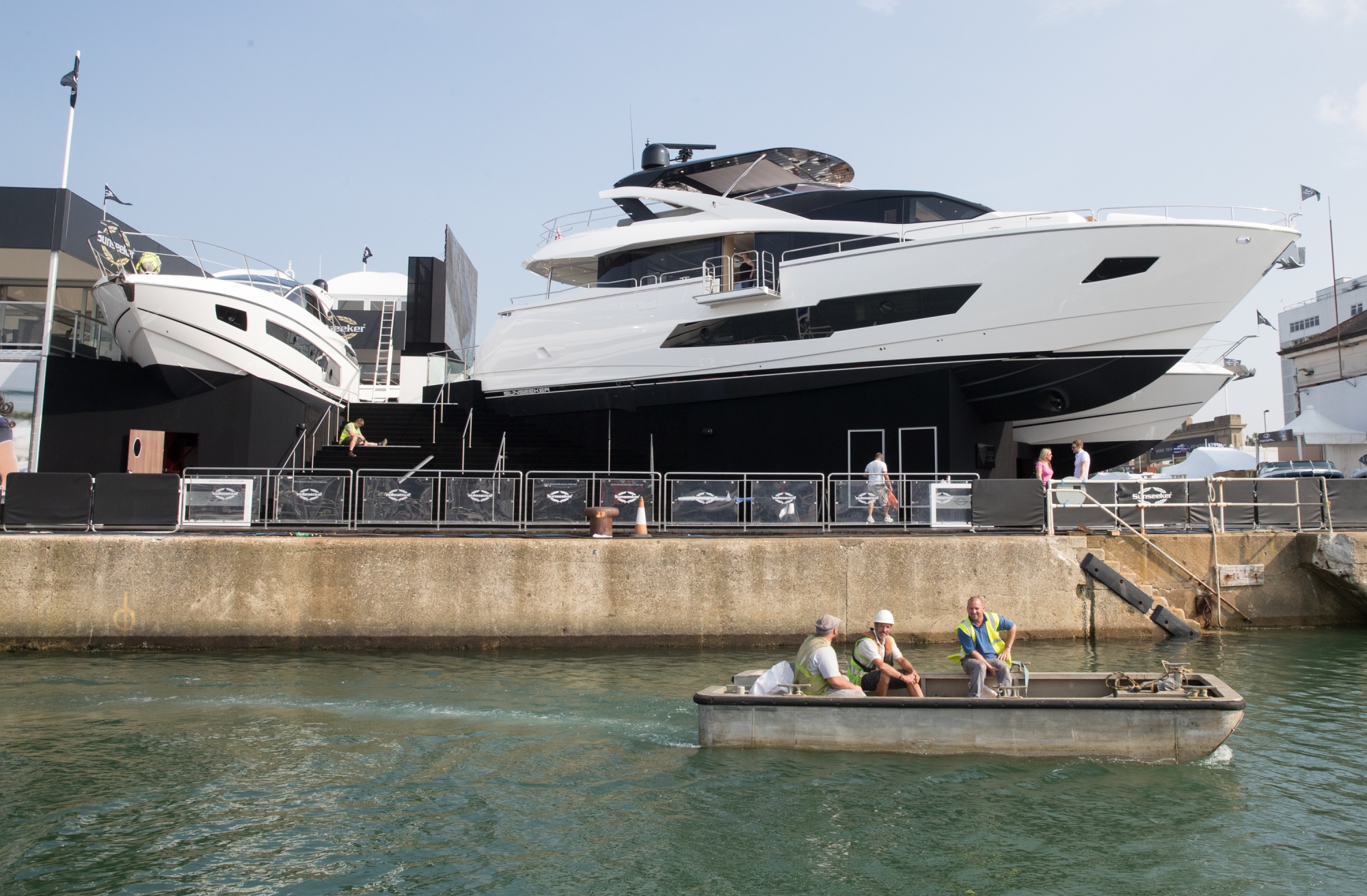 一艘船经过了英格兰南安普敦的Sunseeker游艇。