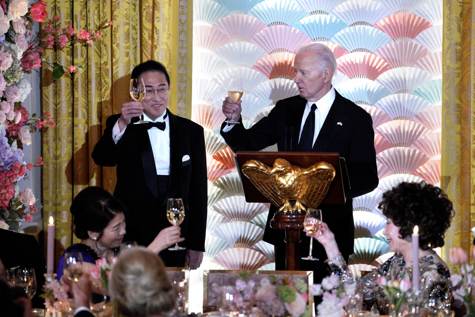 观看:日本的岸田作为拜登的客人出席华盛顿的活动,展示两国面对中国挑战时的团结。伊莎贝尔·雷诺兹报道。