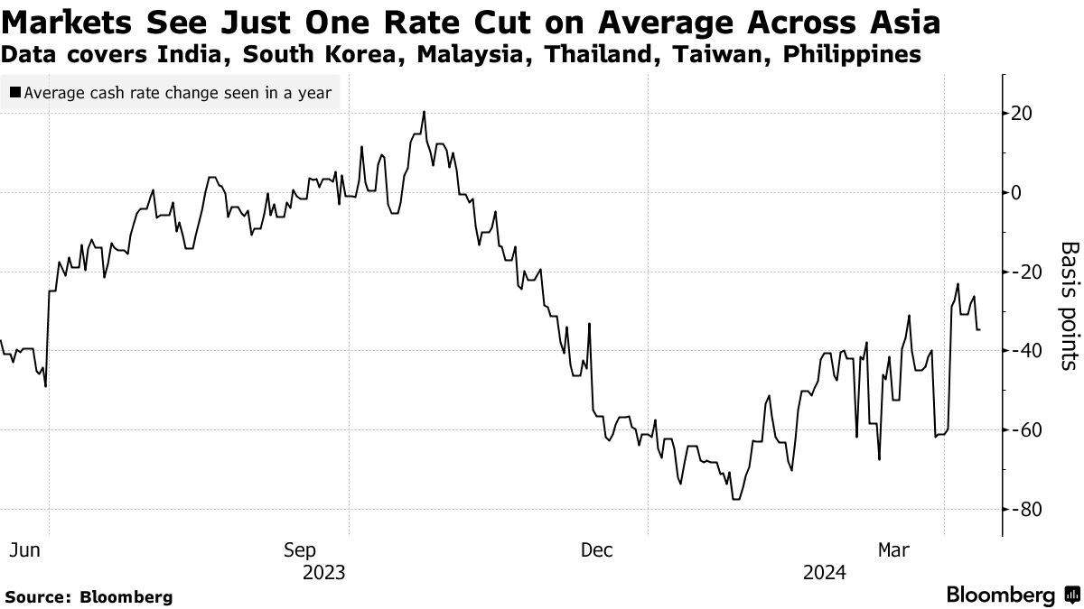 摄影师:Rosa Panggabean/Bloomberg在美国通胀强于预期的情况下,亚洲央行可能不得不考虑今年减少或取消降息的可能性,这导致市场推迟了对全球最大经济体货币政策宽松的概率。