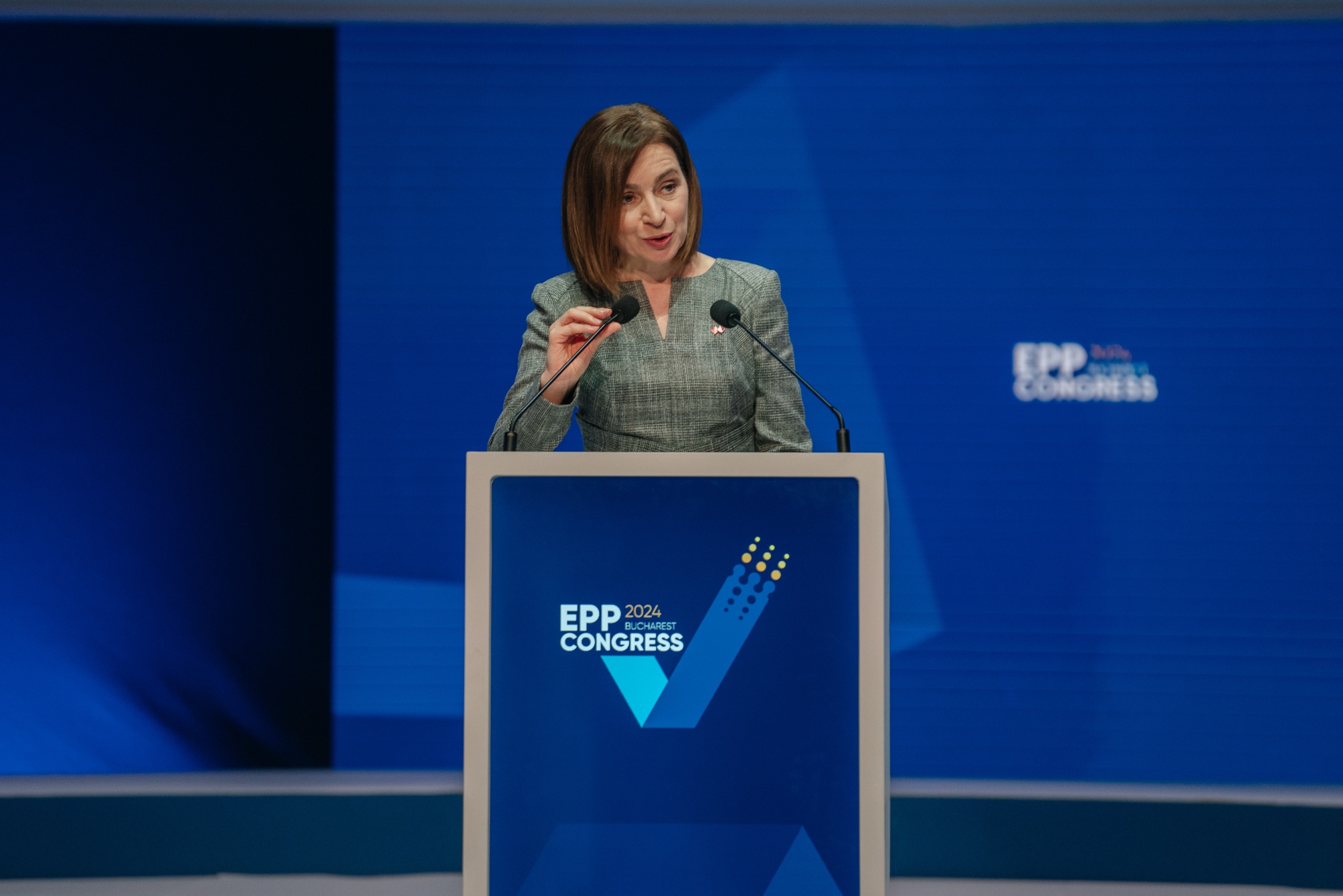 Maia Sandu在3月6日布加勒斯特的欧洲人民党大会上发言。摄影师:Andrei Pungovschi/Bloomberg上周,Sandu还在该地区面临抗议活动,抗议活动发生在启动通往欧盟成员国罗马尼亚的新输电线路工程之初,政府成员也成为示威者的目标,促使警方加强安全措施。