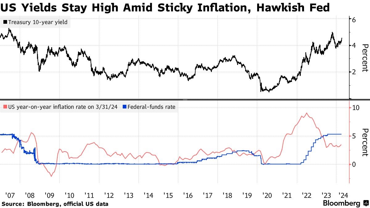 债券交易员 正准备应对10年期国债收益率上升至5%甚至更高的可能性,因为今年联邦基准利率不降息的情况看起来越来越可能。