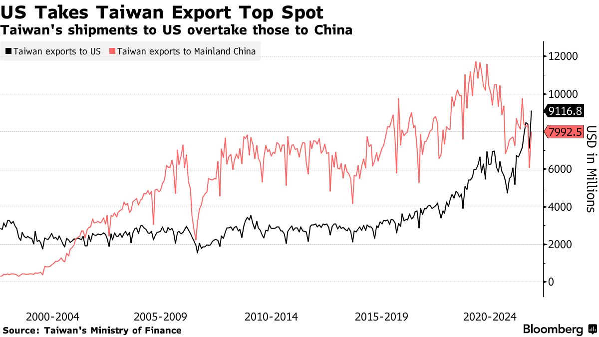 重回巅峰 | 中国领导人习近平和前台湾总统马英九刚刚利用一次具有里程碑意义的会晤强调他们的观点,即海峡两岸如家人般亲近。新数据显示,经过几十年后,美国再次成为台湾出口的最大目的地,取代了中国,这是本周的新数据。