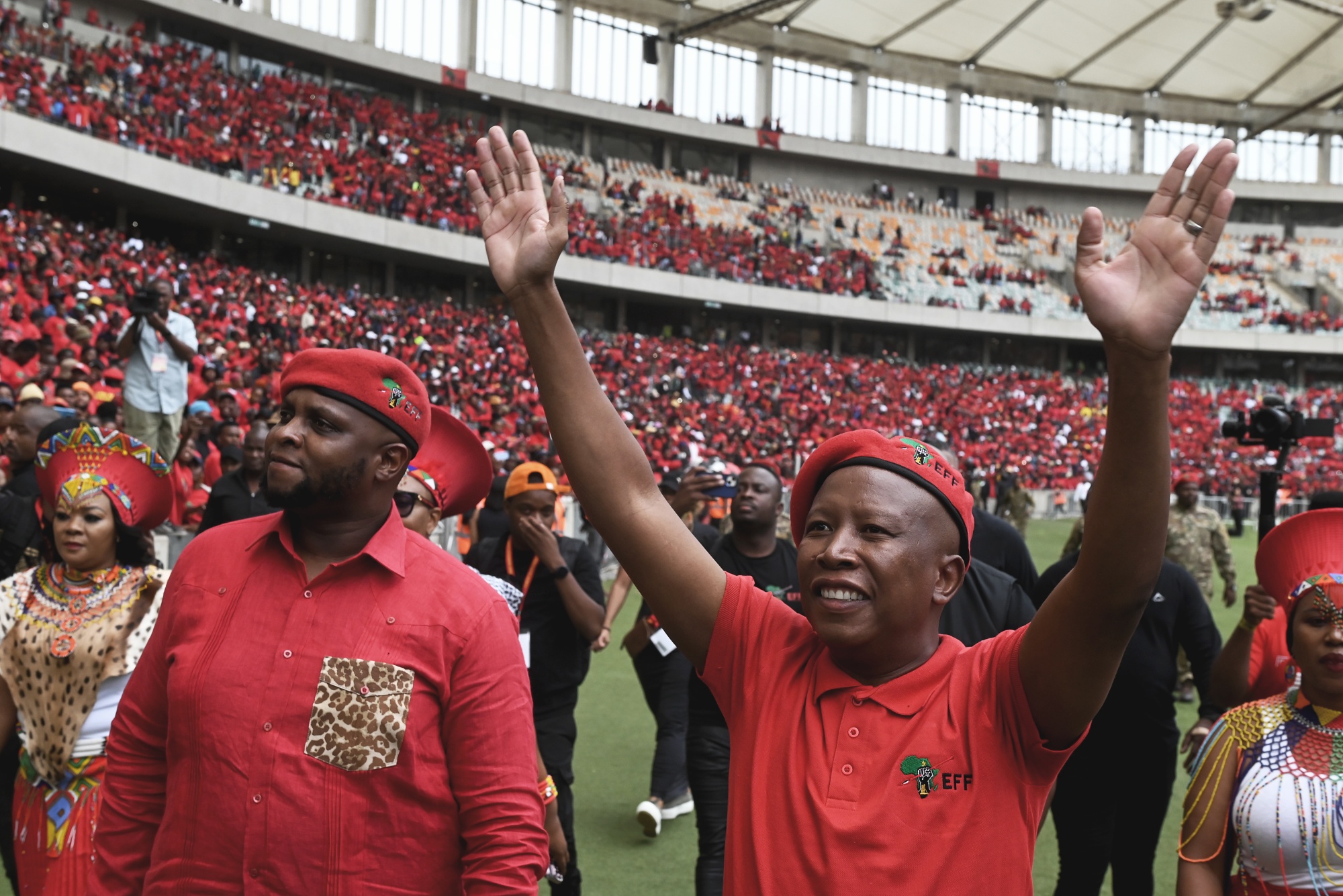 朱利叶斯·马雷马在经济自由斗士党宣言发布会上。来源:彭博社EFF正竞选以增强其在下个月的选举中的影响力,党领袖朱利叶斯·马雷马试图向商界保证,该党将为投资者提供清晰、一致和透明的政策——他表示,现任政府未能做到这一点。