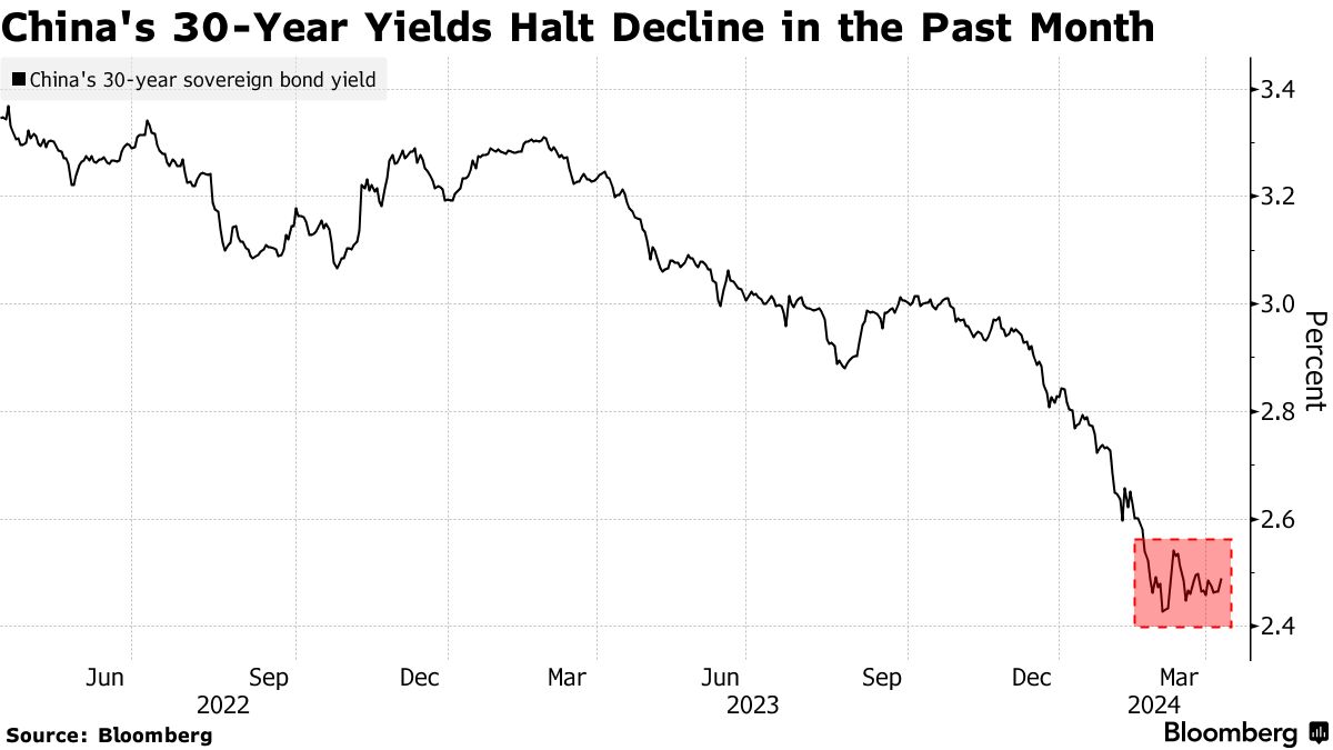 中国30年期主权债券收益率在上个季度以四年来最快的速度下降,购买热潮开始在最近几周中减弱,受到人民币疲软和监管审查担忧的影响。消退。中国央行在最近的货币政策会议上表示,将密切关注长期收益率的变化,以应对经济复苏的迹象。
