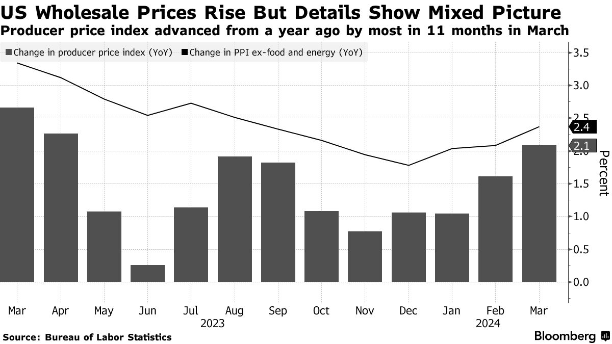 PPI数据显示服务成本连续第三个月上涨,这正是通胀一直固执的主要原因,促使交易员降低了对美联储何时降息的预期。