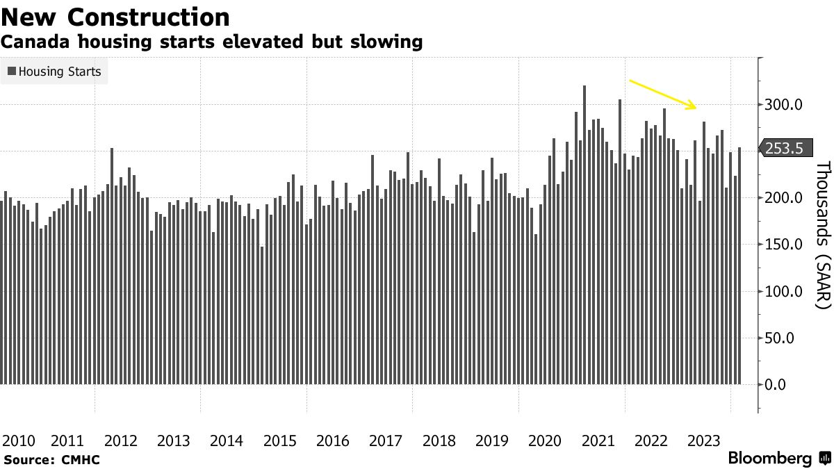 加拿大2月份的住房开工总数为253,468套,为五个月来最高,据加拿大房屋抵押贷款与住房公司称。但去年人口增长约130万。