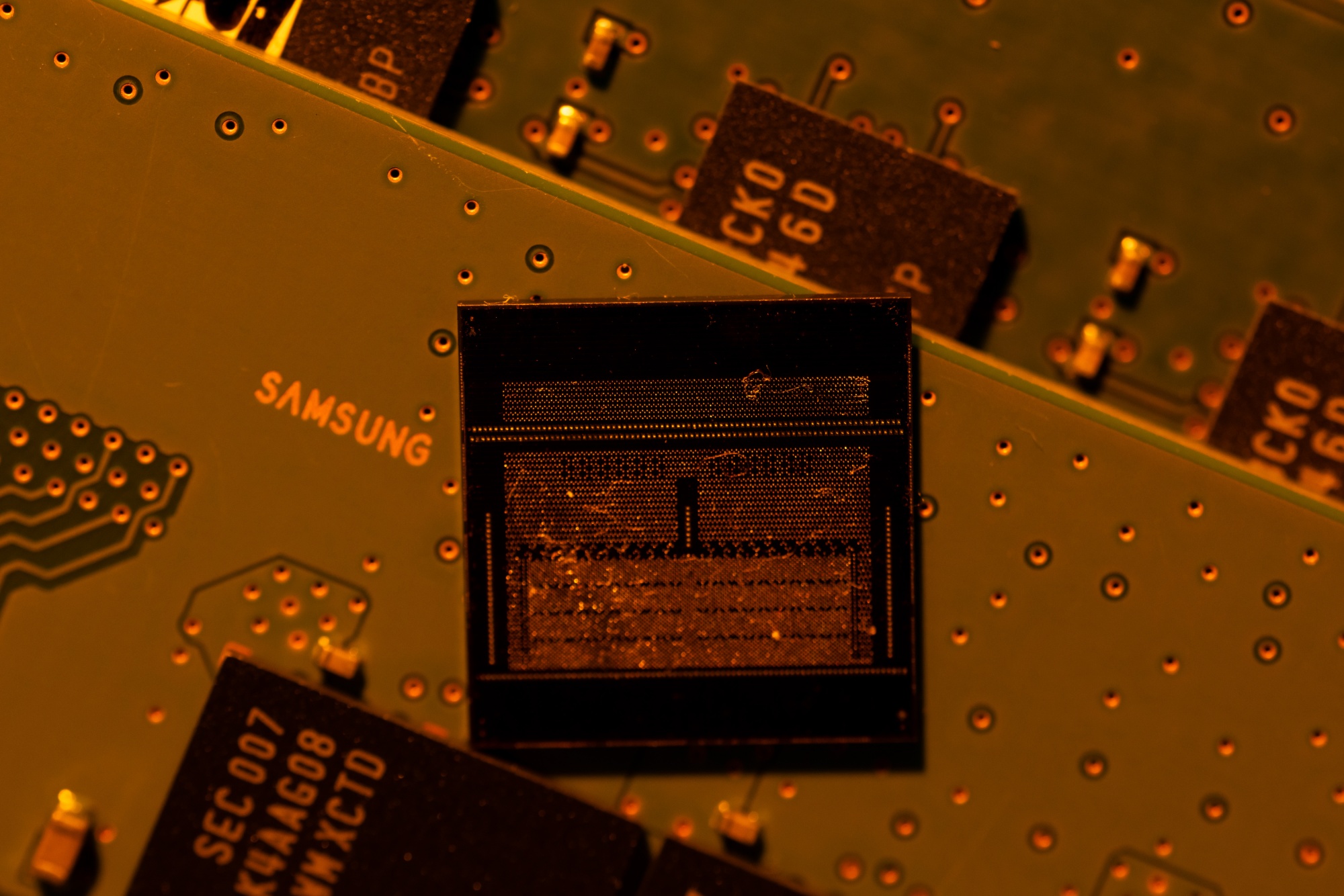 三星电子的12层HBM3E模块,顶部。摄影师:SeongJoon Cho/Bloomberg三星电子公司 正在准备揭开一项价值440亿美元的美国芯片制造投资计划,可能在下周公布,这是华盛顿更广泛努力将半导体生产重新引回美国的标志性项目。