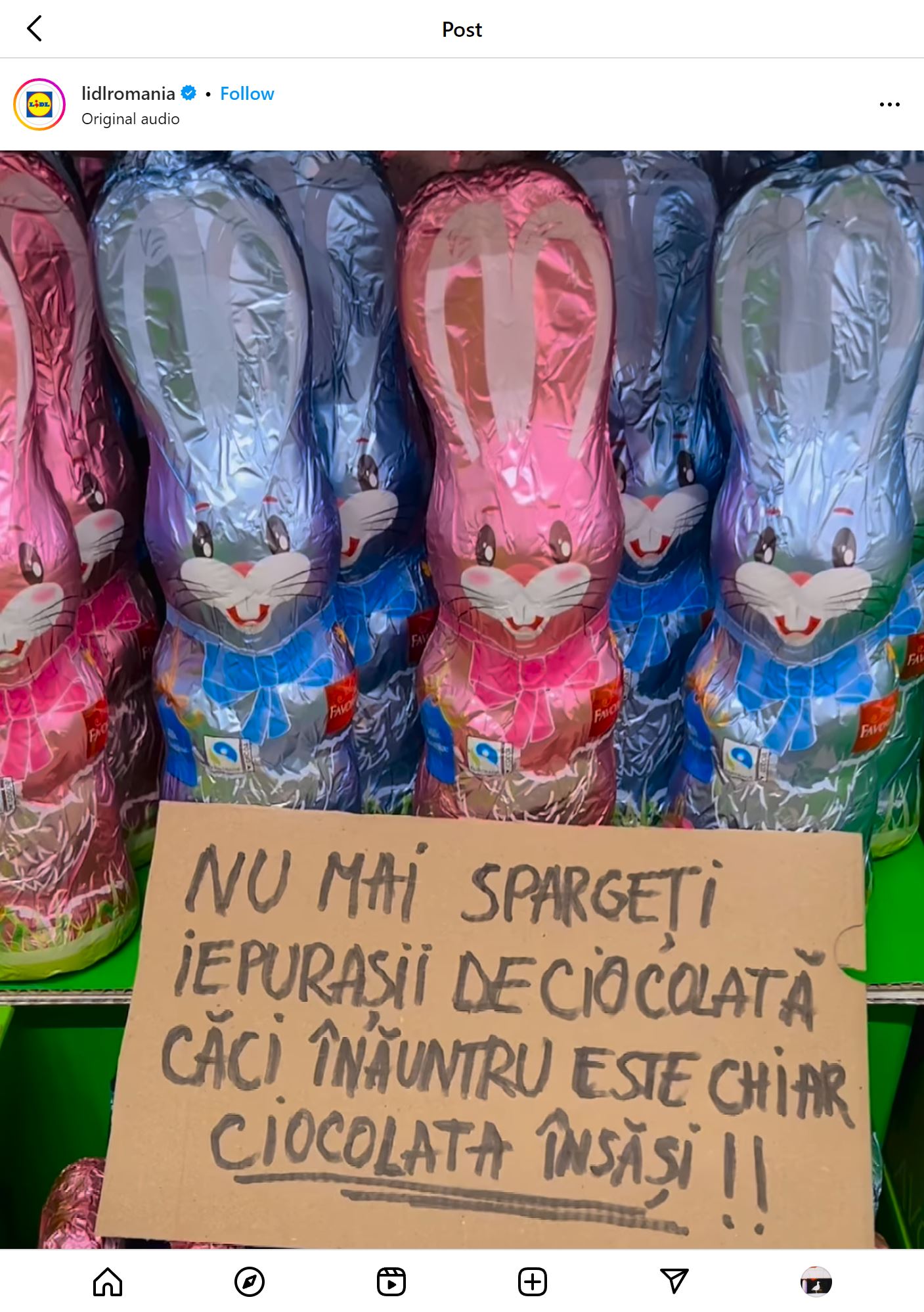 罗马尼亚的假新闻活动变得越来越离奇。超市连锁店 Lidl 和 Heidi 巧克力不得不阻止人们在东正教复活节前破坏据称包含 50 或 100 欧元钞票的巧克力蛋和兔子。罗马尼亚总理和央行行长在选举年受到攻击,但现在似乎还有其他事情旨在激怒选民。欧盟还不得不反驳社交媒体上关于该集团禁止巴尔干国家使用煤炭和天然气的室内供暖系统的说法。Lidl 在其社交媒体账号上发布的一条消息也试图澄清:“别再打破巧克力兔子了,里面只有巧克力!!”