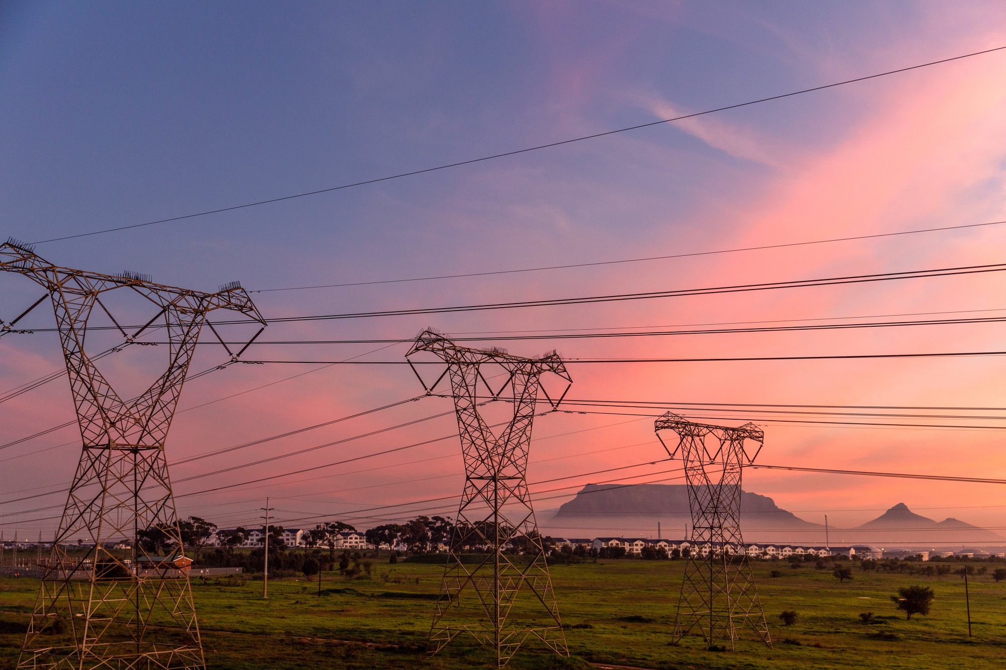 开普敦的高压电力输电塔。