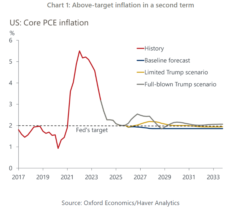 第二个唐纳德·特朗普政府的潜力正成为经济政策分析师关注的焦点。牛津经济学家提出了两种情景,都涉及更高的通货膨胀,但在经济增长影响方面有所不同。