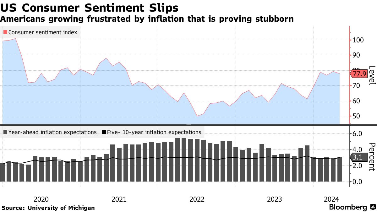 美国消费者信心下滑,对通胀前景持更为悲观的看法 - 彭博社