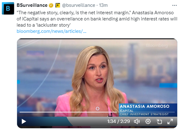 答案当然不简单。但今天,我们得到了一个短期答案:美国最大的银行开始支付比许多人预期的更多的利息,削弱了它们的利息收入。“如果美联储不降息,如果银行贷款不会增加 —— 这就是我们今天的现状 —— 那么很难看到净利率边际的顺序增长,” iCapital的阿纳斯塔西娅·阿莫罗索(Artemis Amoroso)说。“任何过度依赖这一业务的人,都将面临一个平淡无奇的故事。”