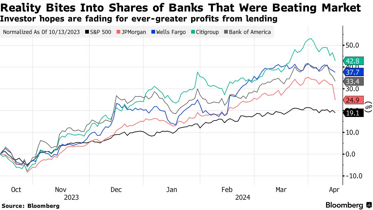 最近几个月,投资者纷纷涌入美国最大银行股,希望缓慢的美联储降息能够继续推动利润增长,但现在他们正面临现实的考验。