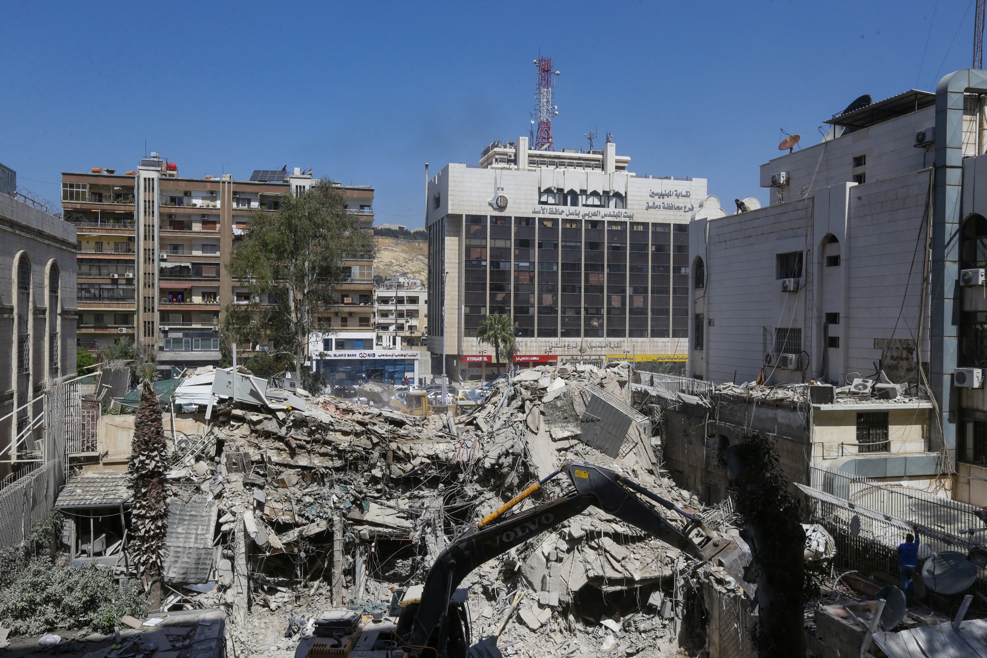 伊朗大使馆附近的一座建筑在2024年4月2日的空袭后的废墟。摄影师:Louai Beshara/AFP/Getty Images### 他们的盟友是谁?他们可能扮演什么角色?