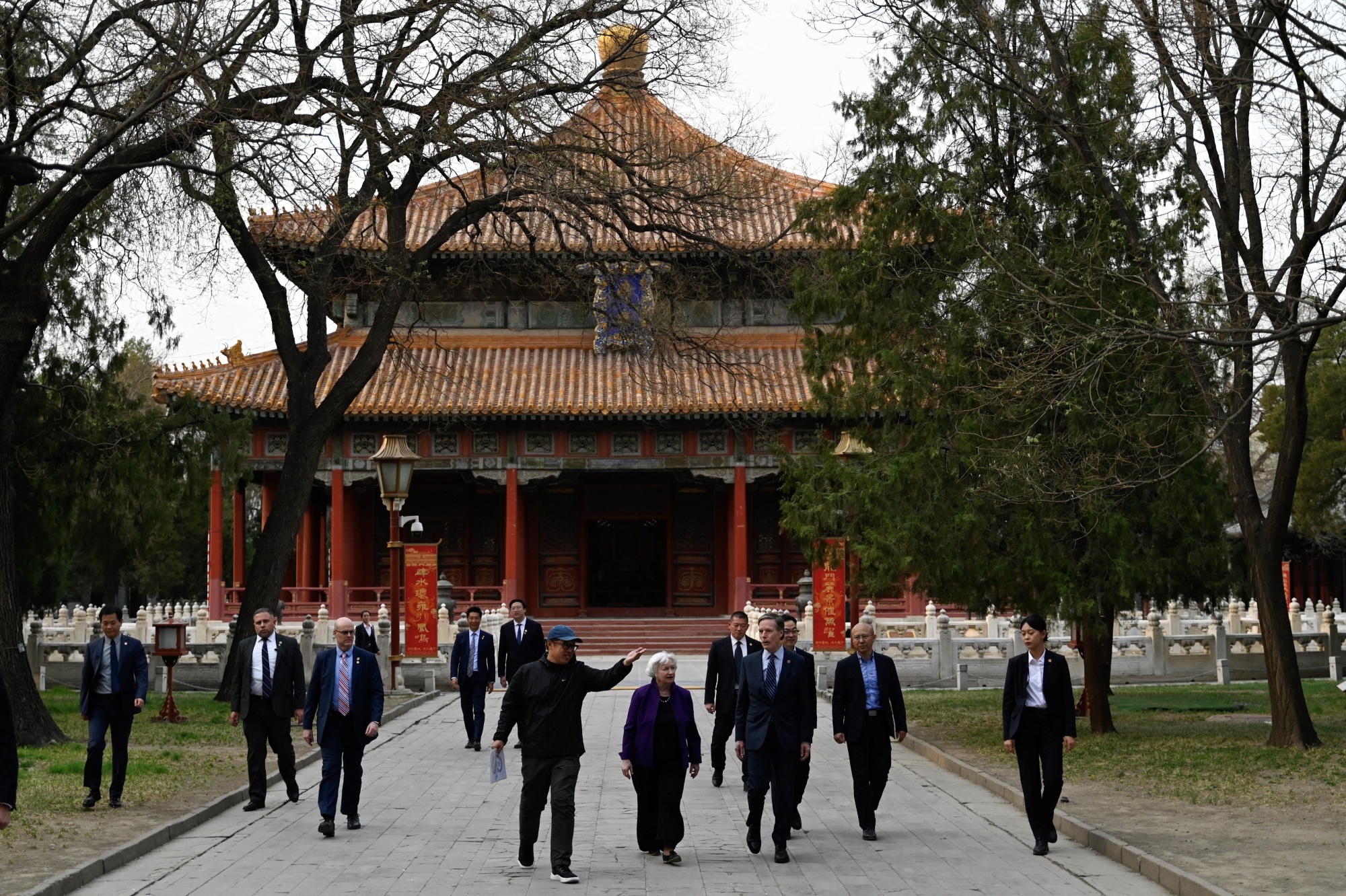 美国财政部长贾内特·耶伦(Janet Yellen)于4月8日在北京。耶伦呼吁中国增加国内需求,以降低全球经济不平衡的危险。