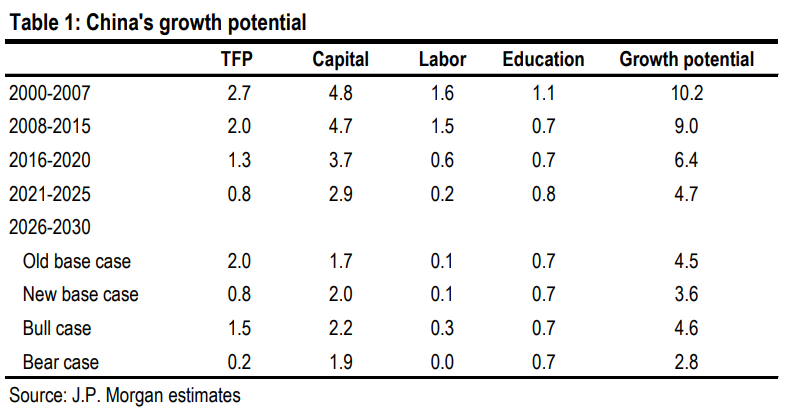 摩根大通公司的经济学家们对供给侧扩张的关注以及对消费所付出的不足表示担忧,最近他们下调了中国未来几年的增长潜力。