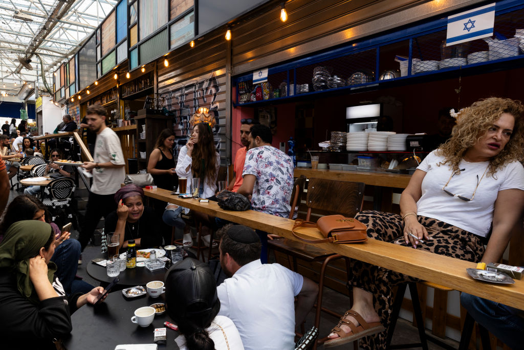4月12日,内坦亚的一个食品市场里的人们。摄影师:Amir Levy/Getty Images他们没有取消特拉维夫戈登海滩上的免费民间舞蹈,数百人在周六聚集在那里。虽然适合游泳的风有点大,但帆船在地平线上飘荡,骑自行车的人在自行车道上巡游,海滨早午餐桌子上坐满了人。