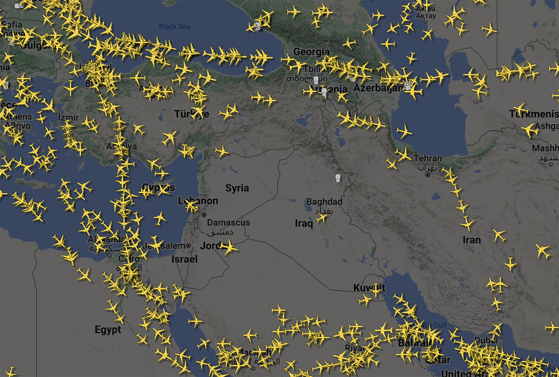 FlightRadar24雷达显示2024年4月14日以色列、伊拉克、黎巴嫩、伊朗周围的空域空无一人。来源:Flightradar24.com伊朗的领空经常被往返于欧洲和印度或东南亚的航班所利用。 中东地区的领空 充满了风险和复杂性。 俄罗斯入侵乌克兰后,许多航空公司被迫绕道,导致航班被迫延长,这种情况至今仍然存在。
