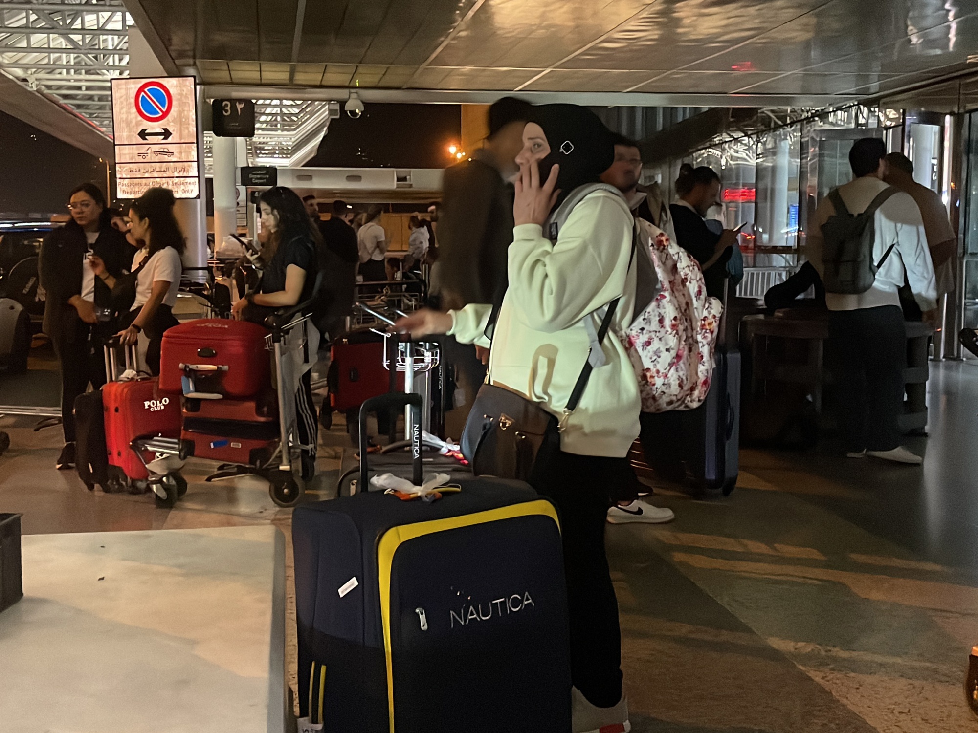 乘客在黎巴嫩拉菲克·哈里里国际机场等候,黎巴嫩在伊朗袭击以色列后关闭了其领空,日期为4月14日。