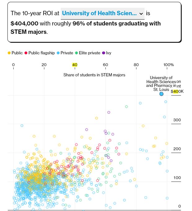 该分析包括一个互动图表,显示数百所美国学院和大学在投资回报率与学费及生活成本的比例上的位置。您可能会发现它有帮助。或者您最终可能会剥夺孩子们追随自己梦想的机会。看到茱莉亚音乐学院,接受率为10%,拥有一群世界上最优秀的音乐家,却被认为是一个糟糕的选择的图表,您会有何感想?班宁顿、奥伯林、RISD也是如此。是的,这些学校很昂贵,没有人希望他们的孩子背负贷款,2 但它们往往提供慷慨的援助计划,主要是助学金,而且这个国家也需要一些创意作家、插画家和,哎呀,解释性舞者。3