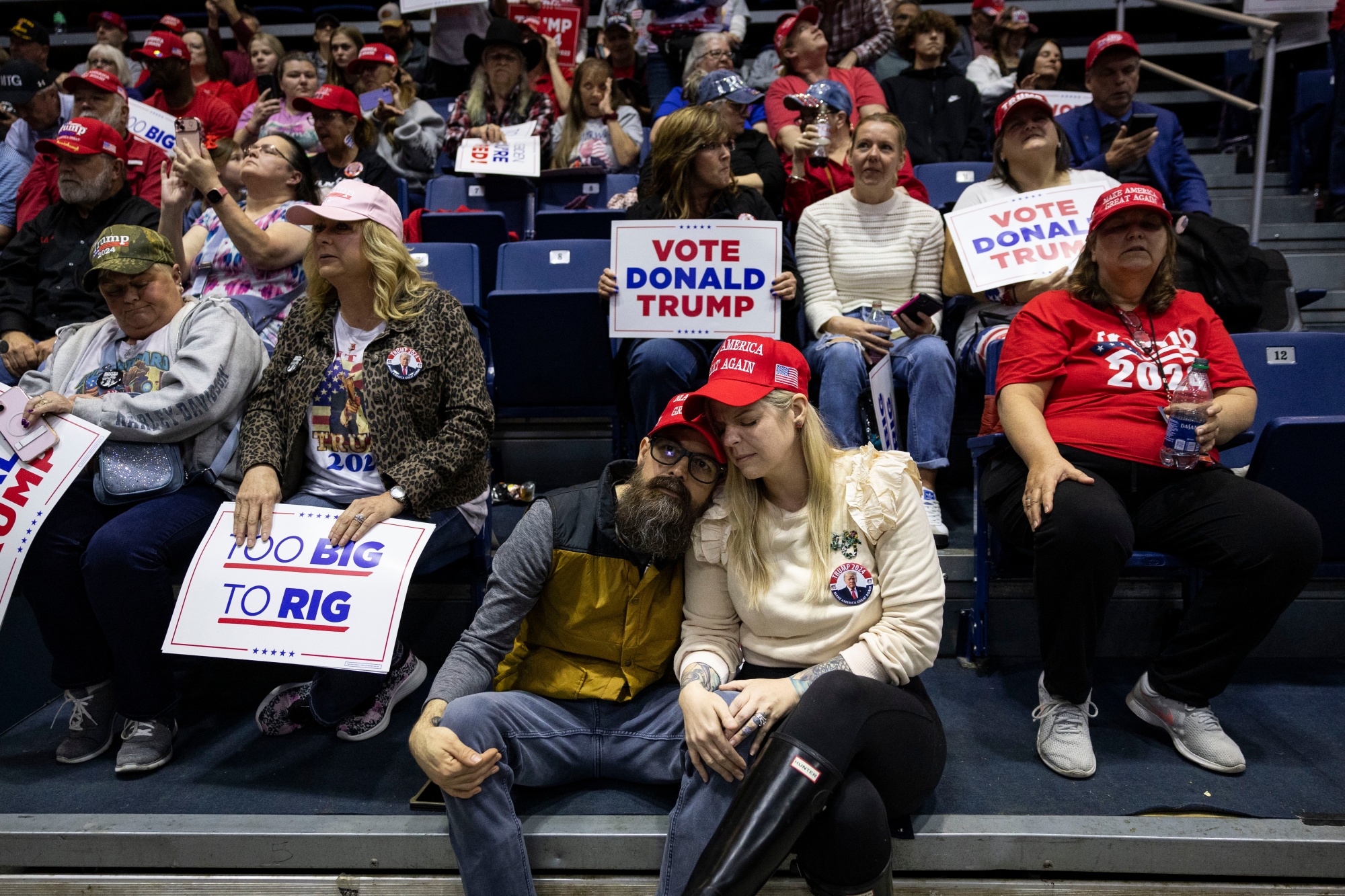 与前美国总统唐纳德·特朗普一起参加“动员选民”集会的与会者在乔治亚州罗马市,时间为3月9日。摄影师:克里斯蒂安·蒙特罗萨/彭博社胡安·默尔钦法官发布了一项口头禁令,禁止前总统评论陪审团、检察官和潜在证人,称这会威胁到他们的安全。该禁令使特朗普面临罚款甚至监禁的风险,如果他违反禁令的话。特朗普有违反法院命令的历史。