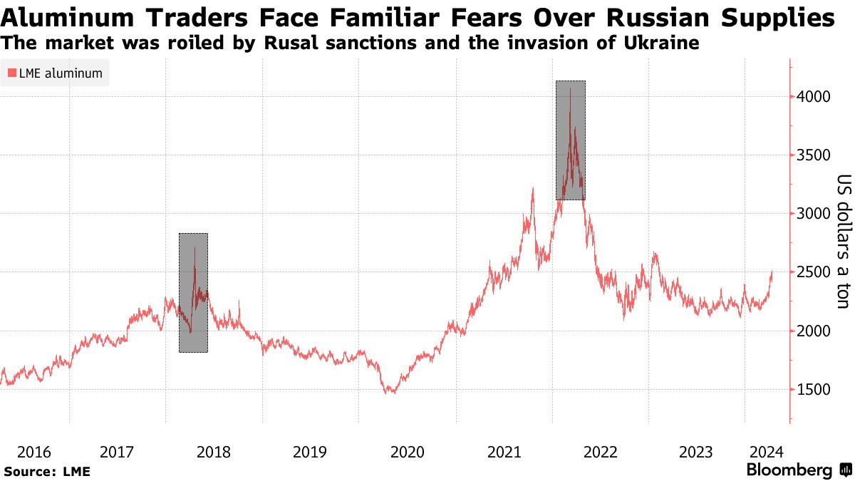 美国、英国对俄罗斯金属实施制裁后,LME铝、镍价格飙升-彭博报道