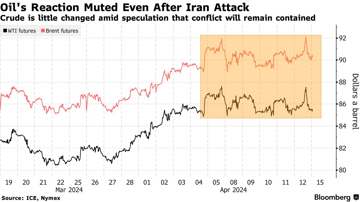 摄影师:Simon Dawson/Bloomberg油价对伊朗对以色列的史无前例的袭击置之不理,市场猜测冲突将保持在可控范围内,限制了涨幅。