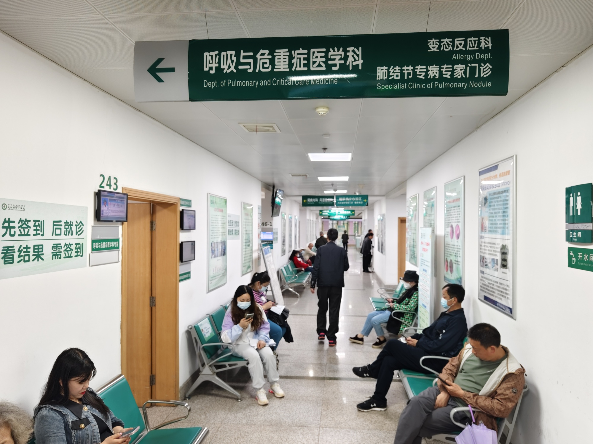 患者在中国中部城市武汉的肺病科等待治疗。本月,该国正经历百日咳病例激增,这使得患者呼吸困难。