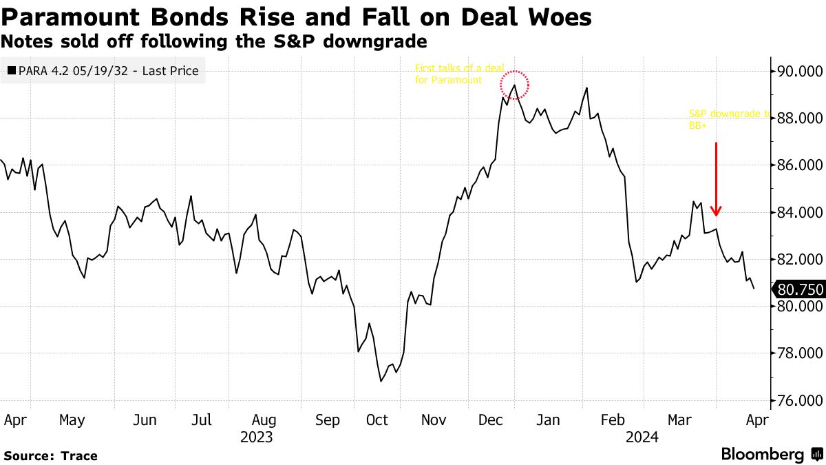 这次降级冲击了Paramount的债务堆栈,导致价格下跌,但也打开了一系列其他对债券持有人不利的可能性——包括没有溢价偿还和可能的次级债务。简言之,对于通常稳健的投资级债券领域来说,出现了不寻常的困扰。