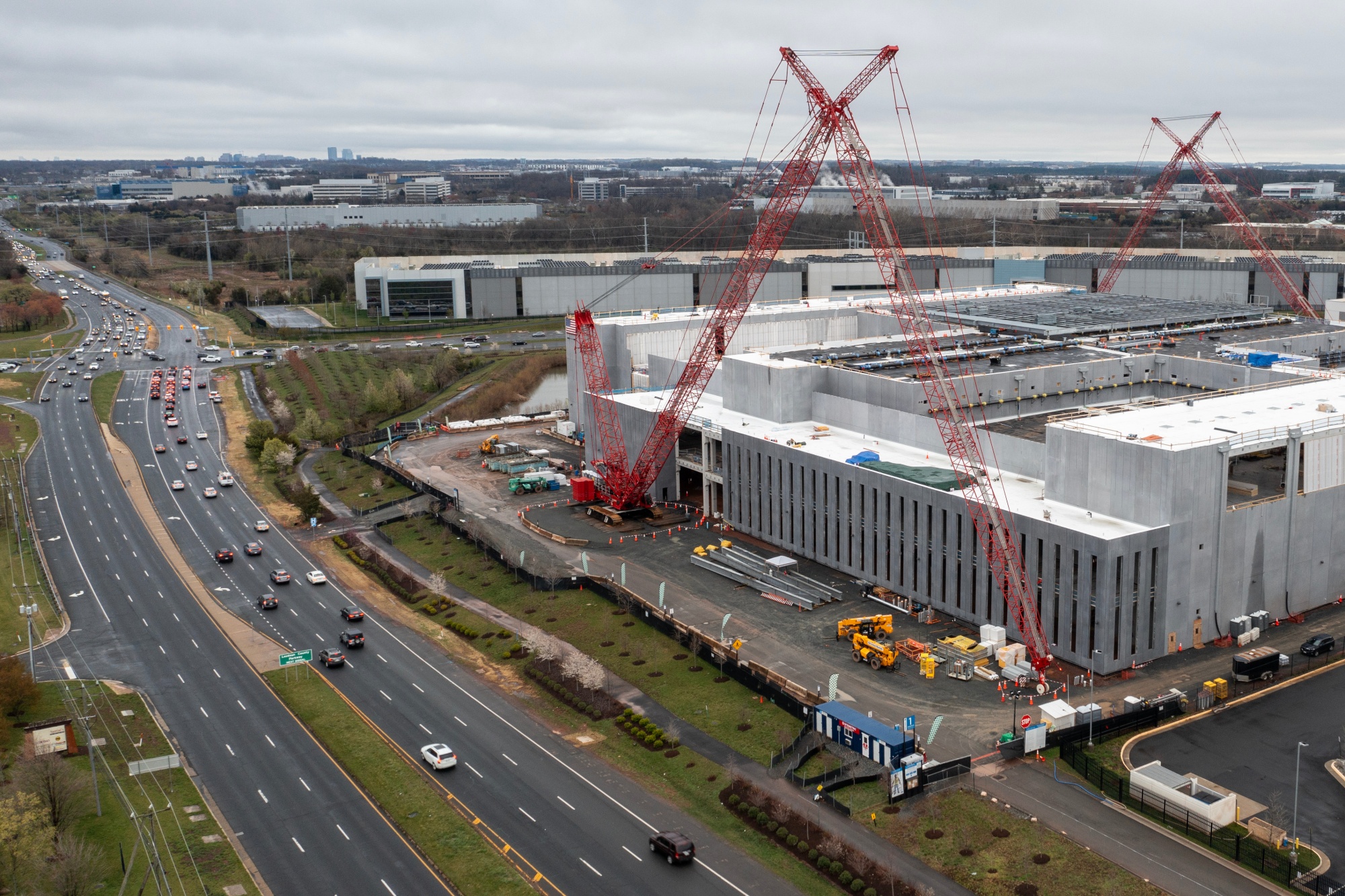 在美国弗吉尼亚州阿什本的Waxpool Road上,CloudHQ数据中心正在建设中,时间是2024年3月27日。