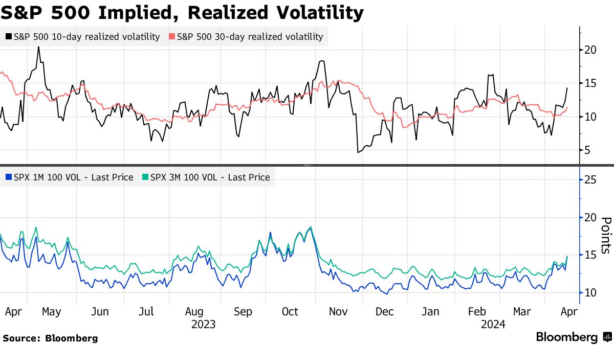 波动性正在各个市场上升,投资者寻求保护,担心中东冲突可能扩大,债券市场的抛售加剧。