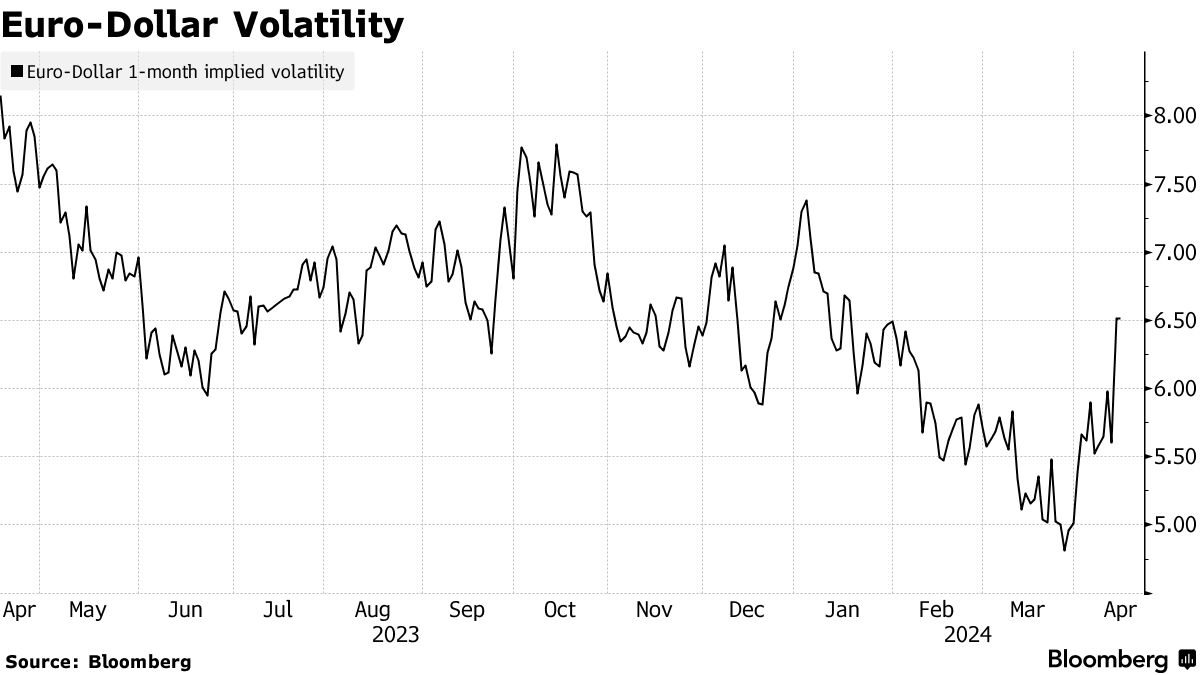 为了防范美国股市回调,一个月期的看跌期权溢价达到自去年十月以来的最高水平。与此同时,货币期权的波动性正在从多年低点上升。一项关键指标 飙升 到了自一月份以来的水平,因为强劲的美国经济数据导致交易员削减了今年预期的美联储降息幅度,推动国债收益率上升。