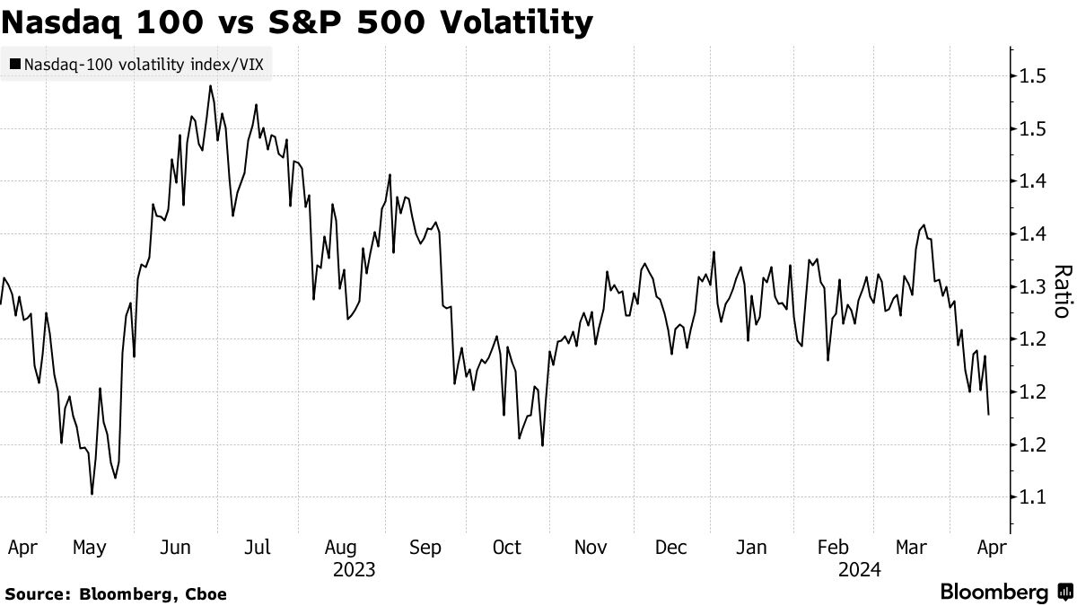 * 纳斯达克100波动率指数与标普VIX的比率也降至自那时以来的最低水平,对冲兴趣似乎集中在更广泛的市场上。