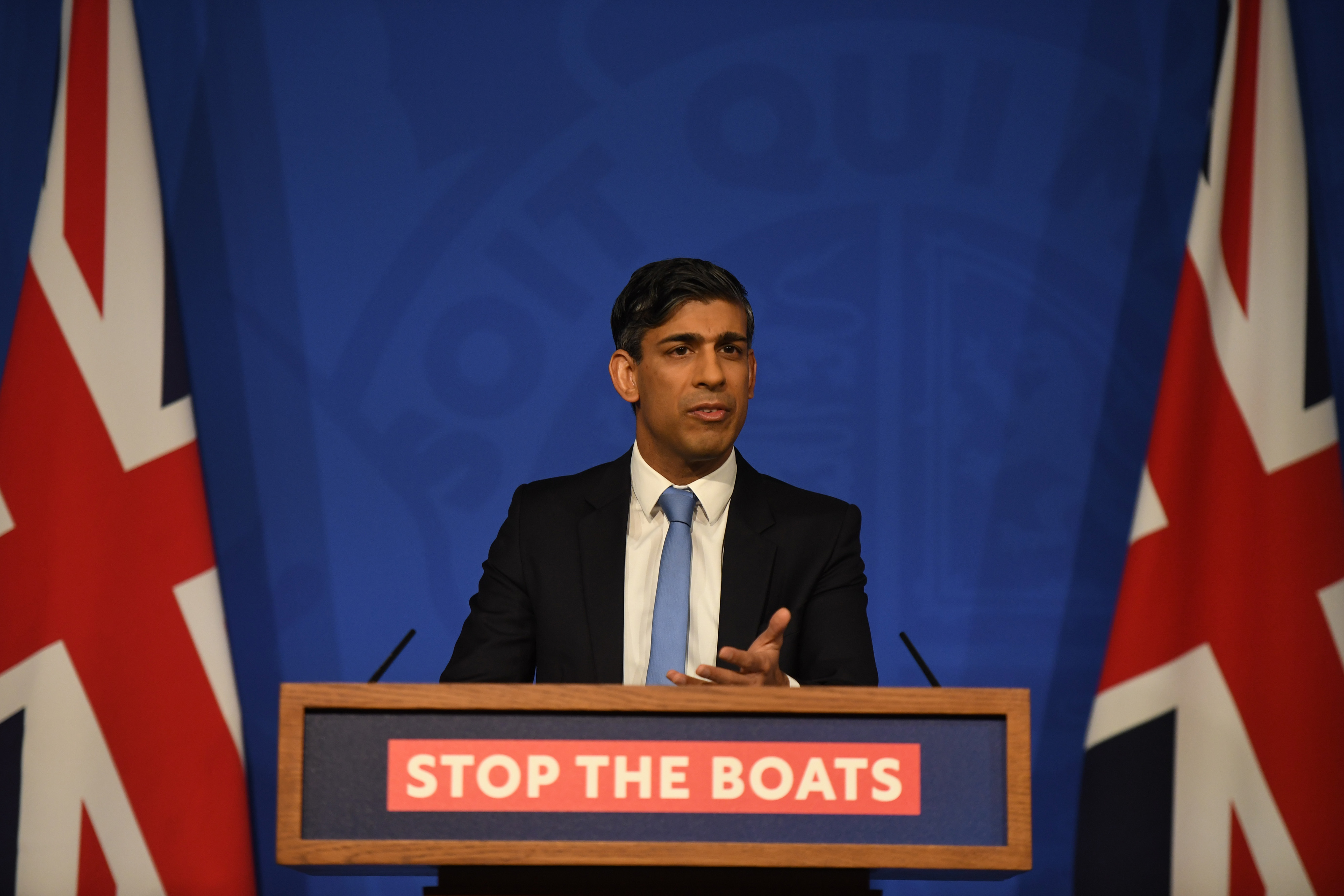 里什·苏纳克在伦敦唐宁街发表讲话,议会通过了卢旺达法案,日期为1月18日。