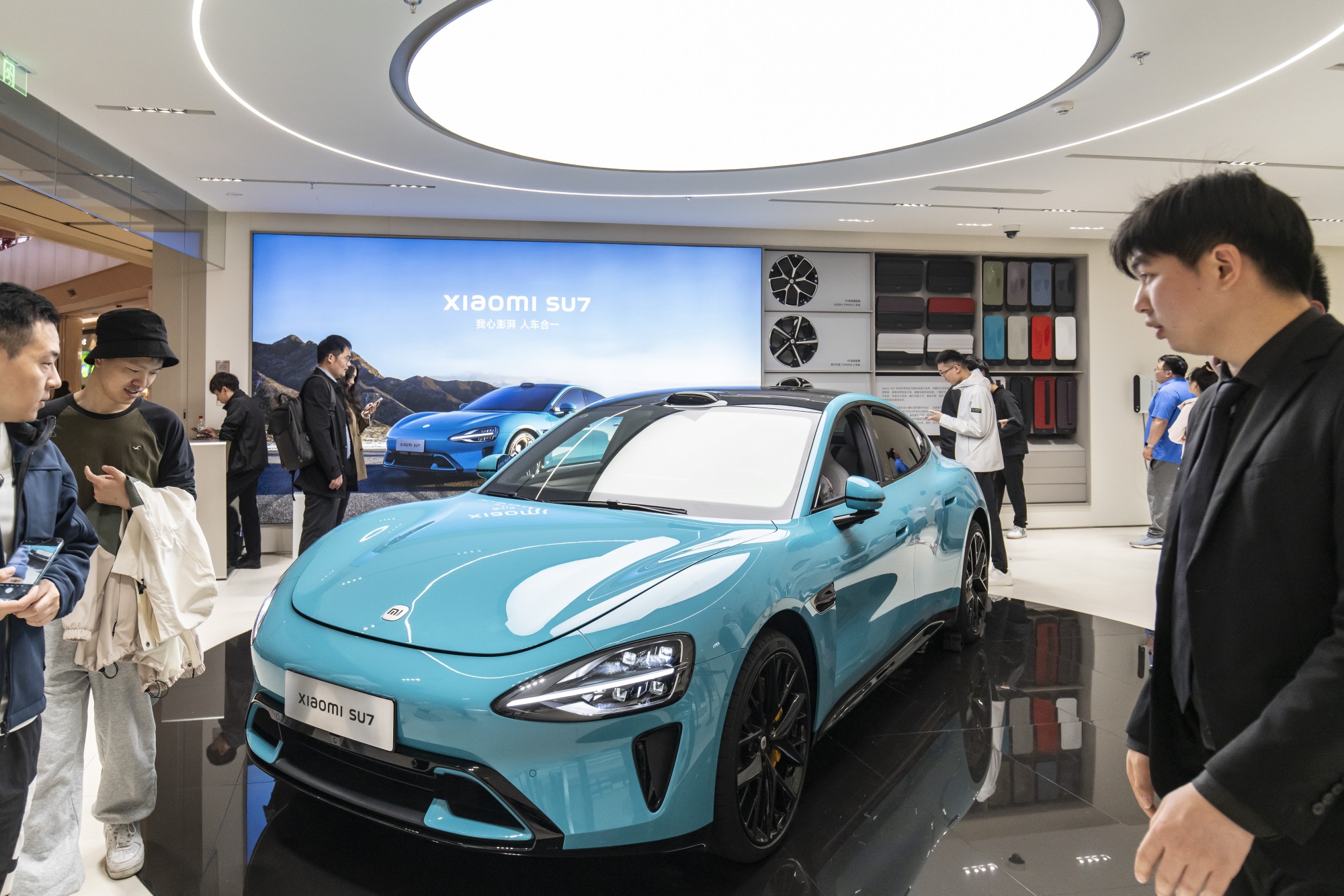 上海展出的小米SU7电动汽车。摄影师:Qilai Shen/Bloomberg“小米和华为的进入是一场重大的颠覆,特别是通过他们在消费者技术和供应链管理方面的专业知识的发挥,”Edmond de Rothschild Asset Management的基金经理Bing Yuan说。“他们对智能功能的关注为消费者在车辆功能方面期望设定了很高的标准。”