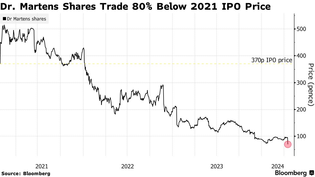 马丁博士已经在11月份削减了2024年和2025年的指引,因为美国销售疲软,手头紧的购物者已经转向其他款式,放弃了它的厚底靴。