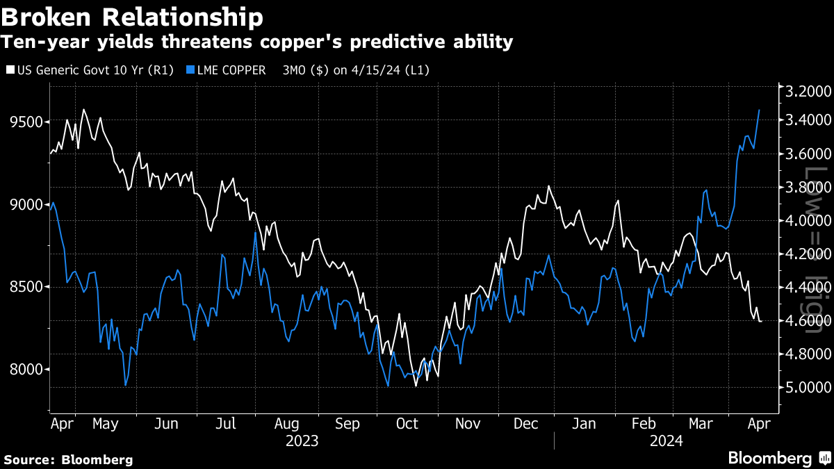 探测经济温度。摄影师:Oliver Bunic/Bloomberg在2024年,想象美联储根本不会在2024年降息已不再是一个致命的错误。三个月的通胀超过预期很难被视为异常。越来越多的数据显示,通货紧缩的步伐已经停滞,甚至完全逆转。铜作为诊断经济健康的能力表明,经济正在继续前行,几乎没有明显的放缓迹象,这削弱了降息前景的希望,正如Unlimited的首席执行官兼首席投资官鲍勃·埃利奥特所说:
