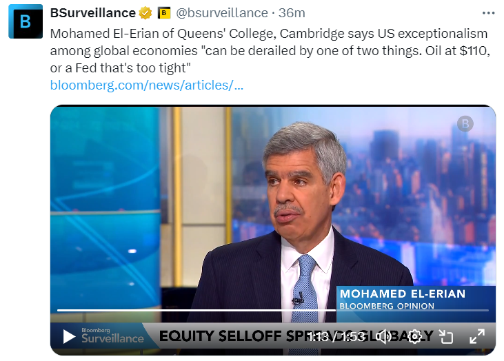 华尔街两位最受关注的宏观声音今天阐述了他们各自的观点,《监控》预告了美联储在本月会议和六月潜在降息的路径(如果 El-Erian 是对的)或者更多的“长期更高”药方(Slok 的看法)。