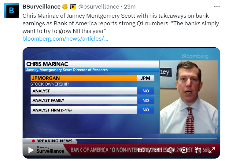 随着美国银行加入摩根士丹利完成华尔街五大公司季度报告,乔恩问了简尼蒙哥马利斯科特的克里斯·马里纳克,投资者会想拥有什么样的银行。马里纳克的表述听起来像是美国银行和摩根大通。