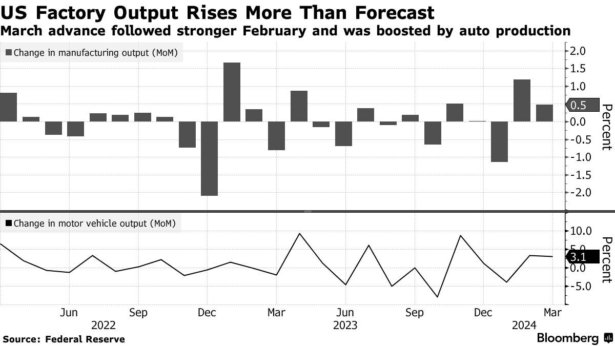 美国工业生产再次上升,制造业受到提振-彭博社