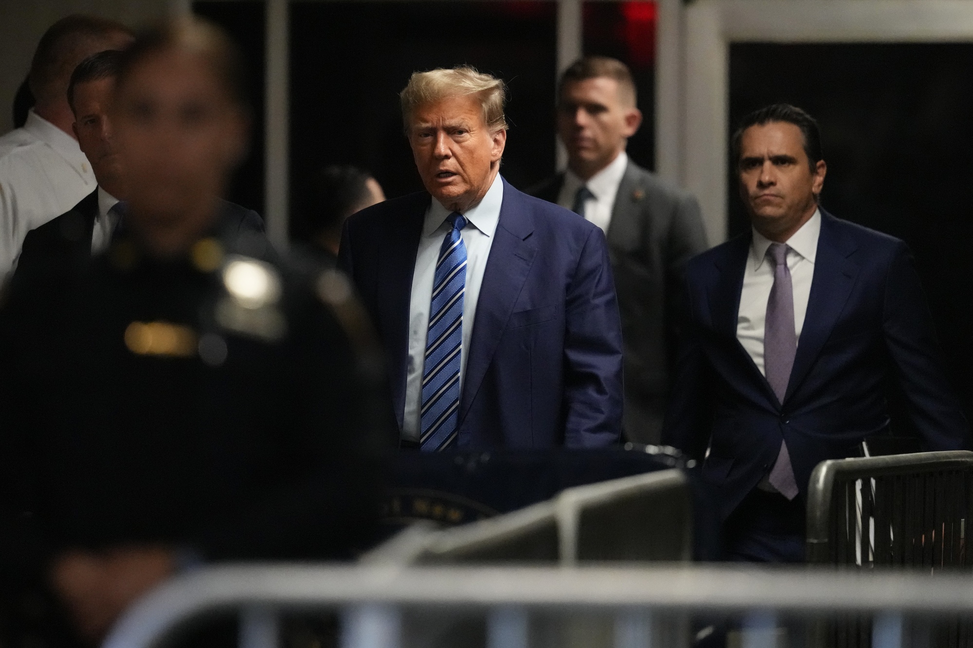 特朗普抵达曼哈顿刑事法院。摄影师:玛丽·奥尔塔弗/AP照片拜登希望利用特朗普的法律问题,并对比前总统偏向富人和公司的减税政策,与他自己对亿万富翁征收新税和对最大公司增加征税的计划。