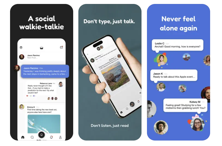 Airchat目前仍然只对受邀用户开放,是科技圈中被炒作的最新应用,由AngelList联合创始人Naval Ravikant和Tinder前首席产品官Brian Norgard共同开发。打开应用后,它看起来有点像Twitter动态,显示着用户发布的语音笔记的文字转录,你可以播放这些语音笔记。这些语音笔记可以被点赞或转发,类似于Twitter,现在被称为X。